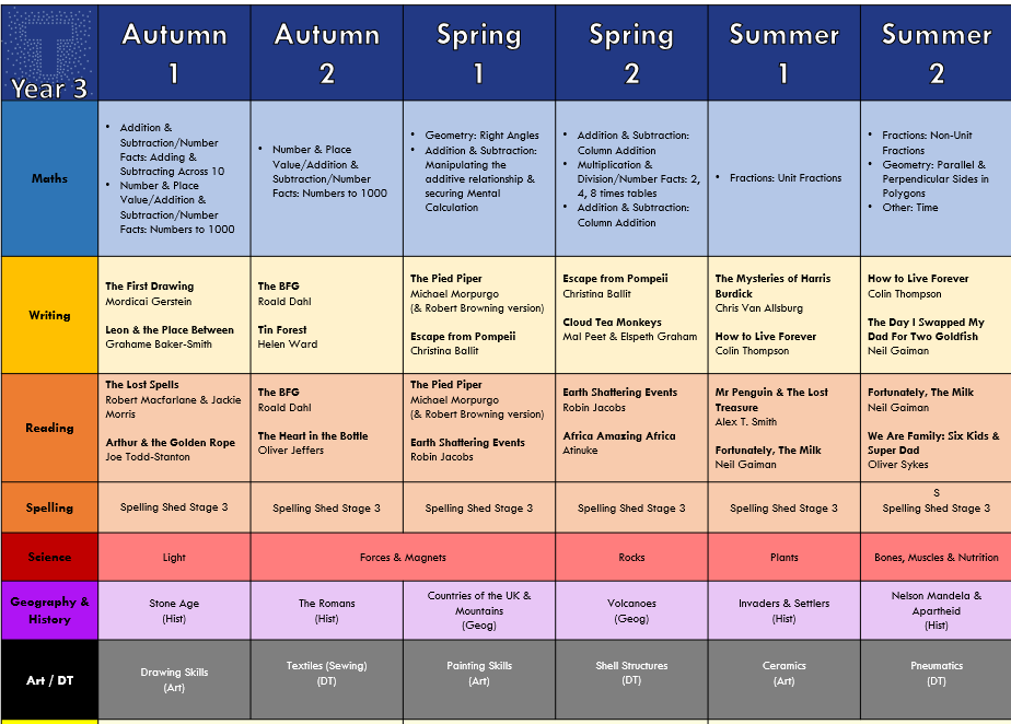 Reading: We do not use Reading Records in Year 3 but pupils are expected to read at home with a parent a minimum of 3 times a week. We use Accelerated Reader to track their reading progress, you can learn more about this scheme here.