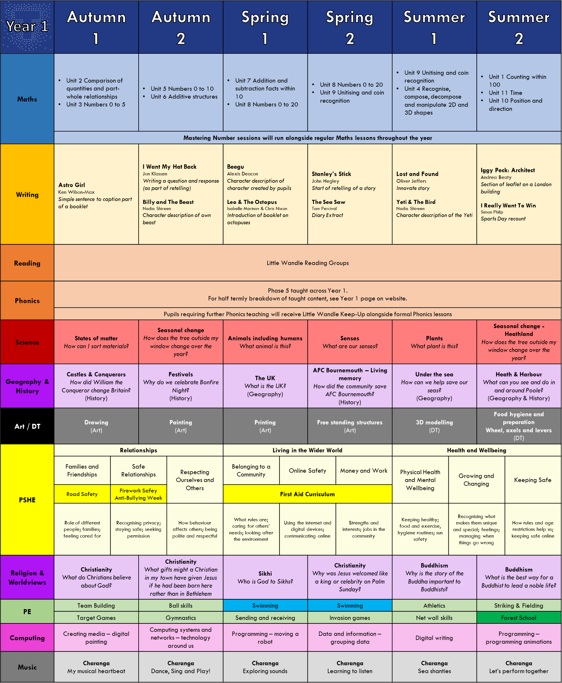 Below you will find a document which outlines what your children will be studying across the course of the year in the different subject areas.