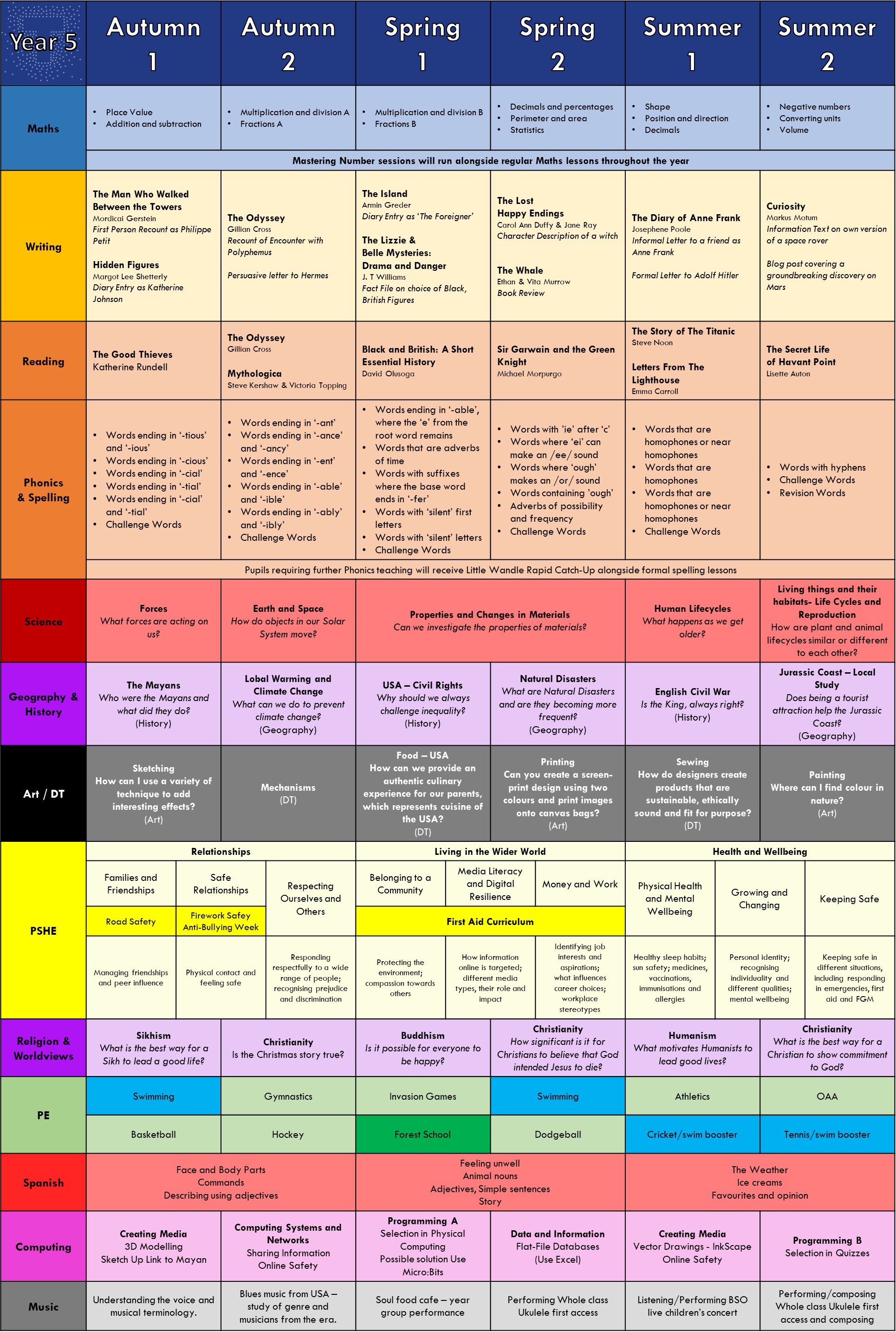Below you will find a document which outlines what your children will be studying across the course of the year in the different subject areas.